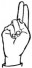 На ћирилици написано НИКОДИЈЕ РАДОСАВЉЕВИЋ састоји се из 20 слова [?]. Исписано ћириличном једноручном азбуком за глувонеме: